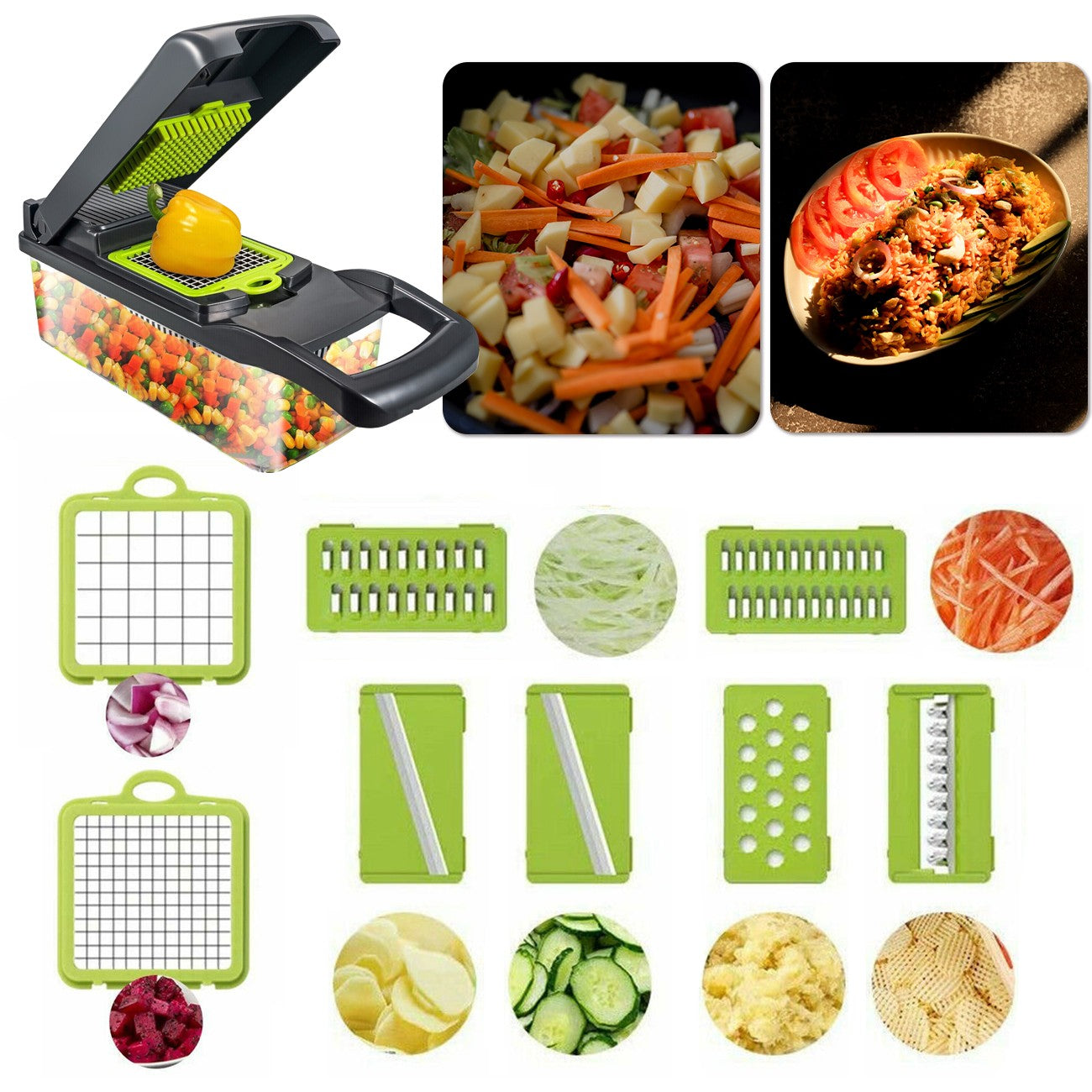 15-in-1 Vegetable Chopper with Container – Multi Kitchen Cutter for Dicing, Slicing & Strips